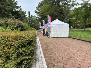 最初の休息ポイントは、20km地点、内灘町の道の駅です。昨年は到着しても食べるものがすでに無くなっており水分補給のみで再出発しました。今年もそうだろうと思い休息ポイントには入らず通過しました。