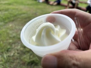 ここでは、ソフトクリームとお茶をいただきました。ソフトクリームはすぐ力になるのでハンガーノックを防ぐには効果があると思います。